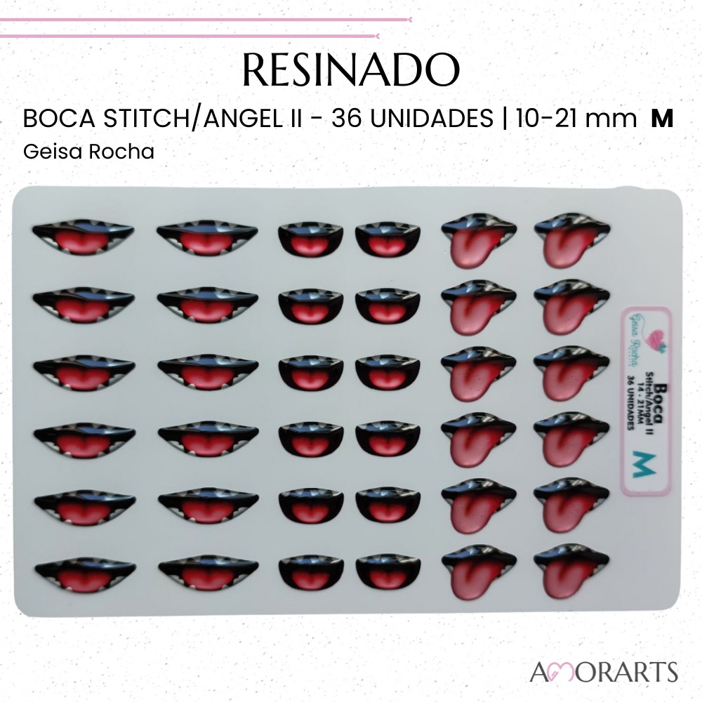 Adesivo Resinado Boca Stitch/Angel ll M--36 Unidades